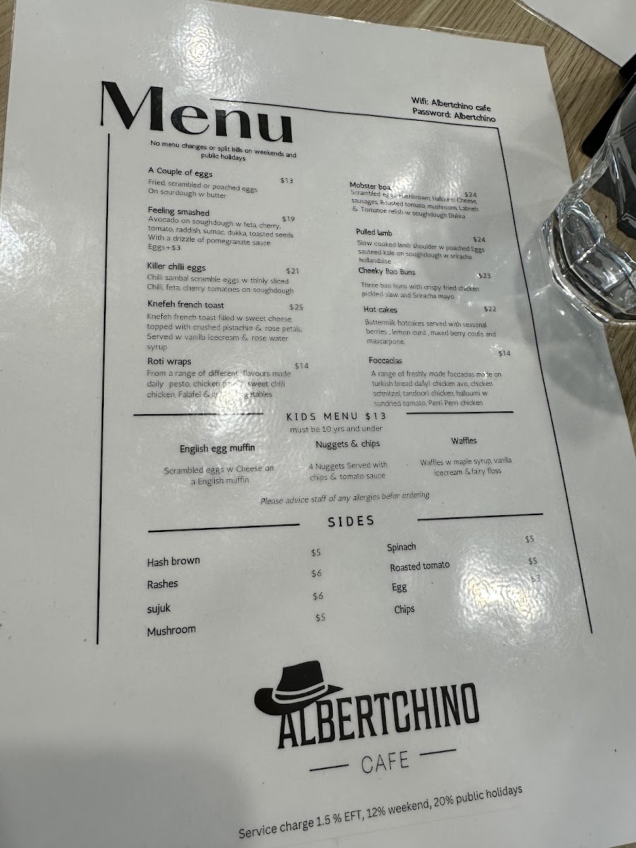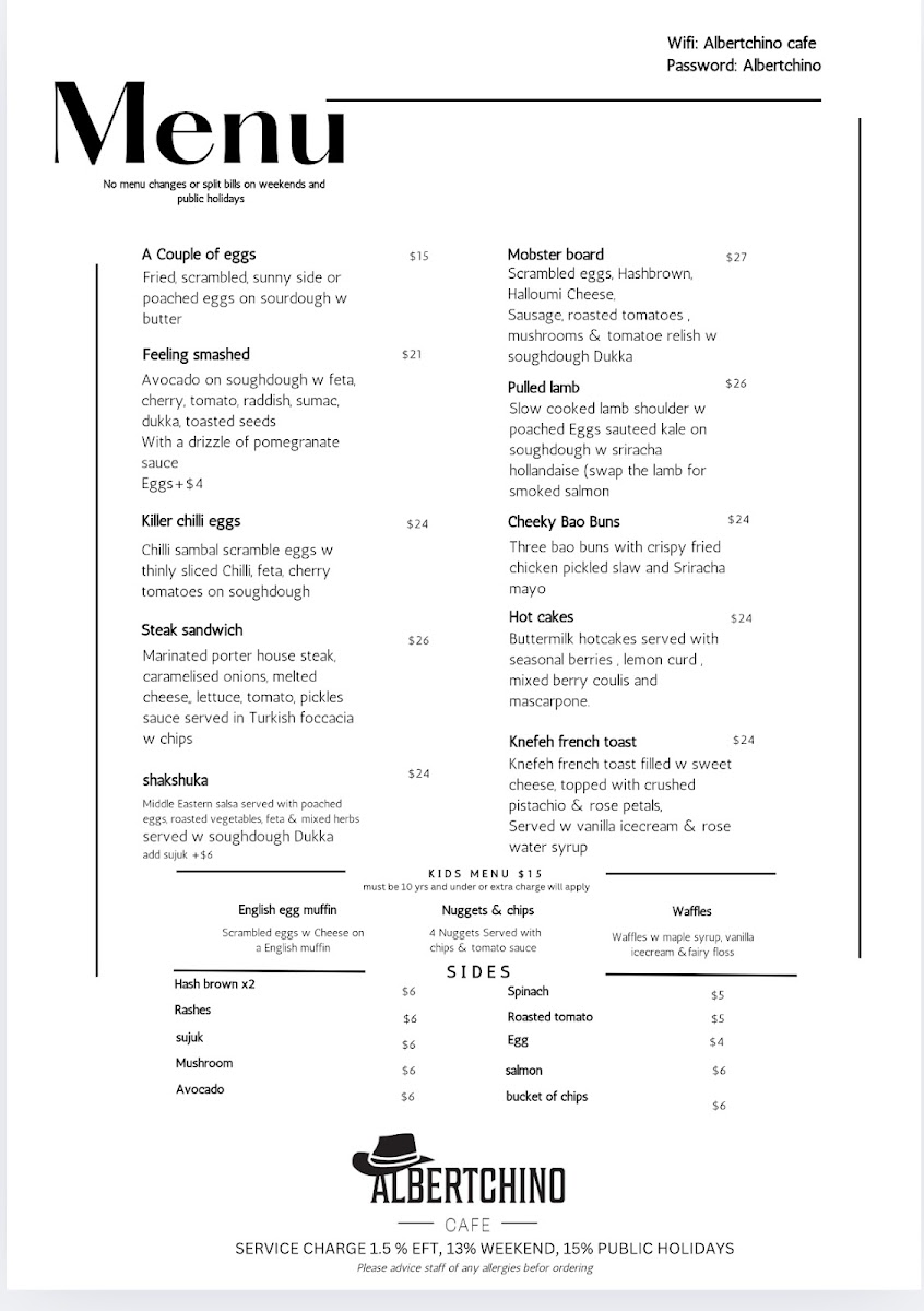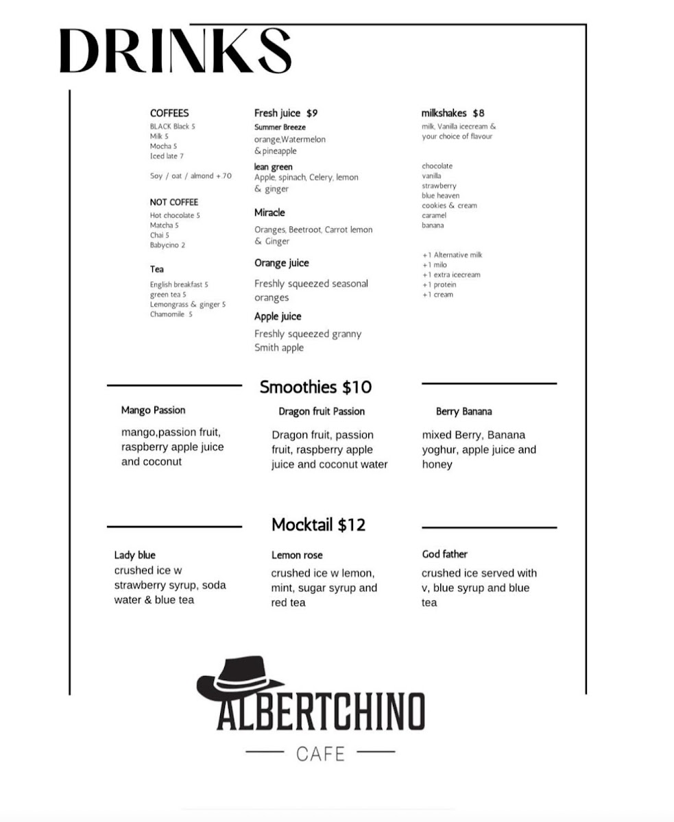 Albertchino Cafe Menu